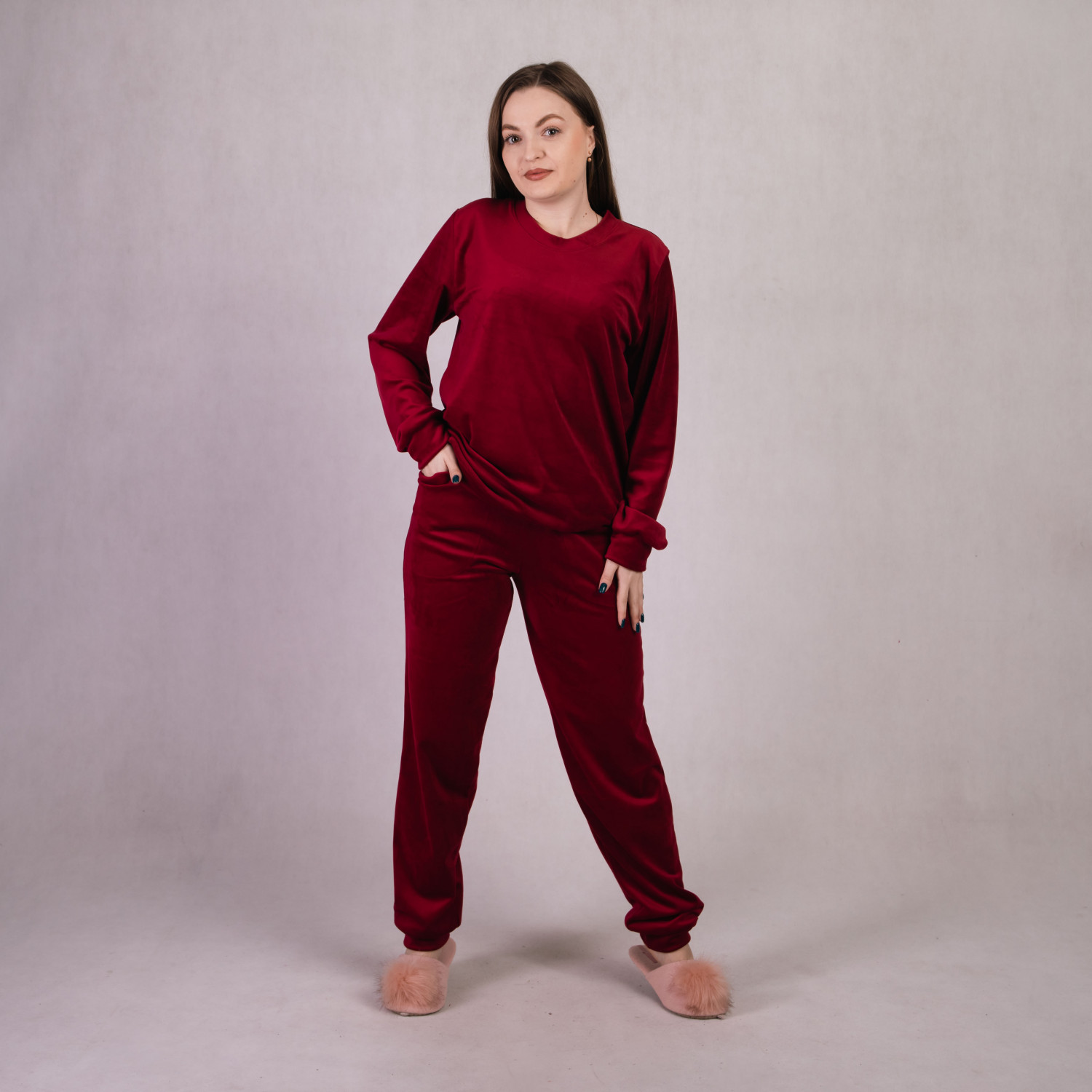 Домашний велюровый костюм "Бархат Велюр-бордо" 46-54р.