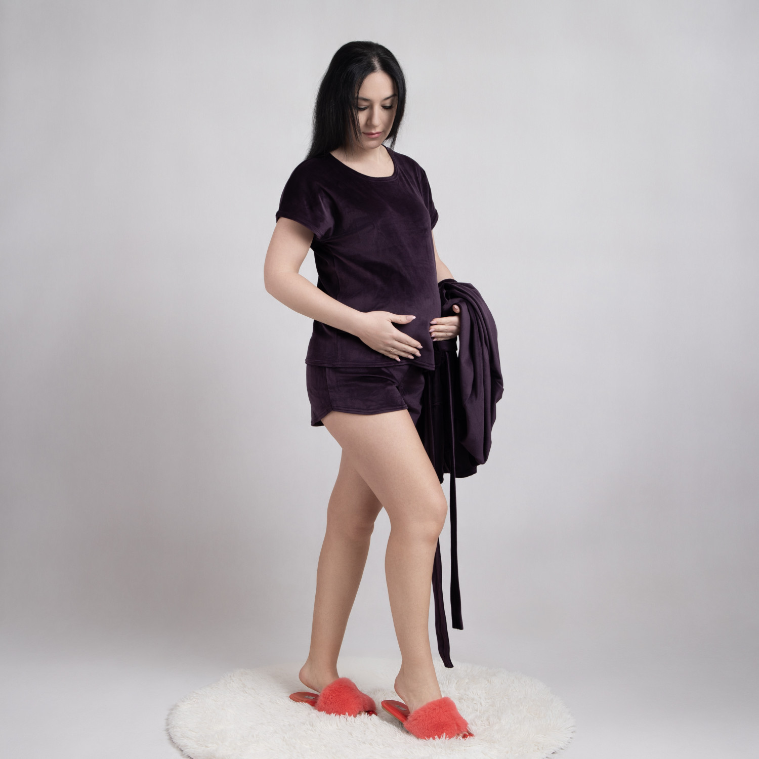Домашний велюровый костюм футболка+шорты "Бархат Велюр-баклажан" 46-54р.