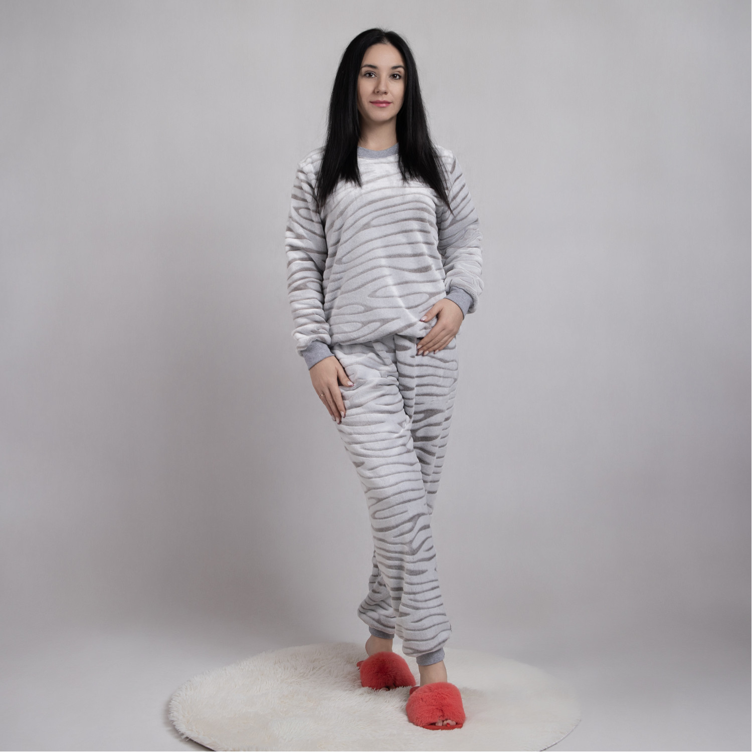 Красивая женская махровая пижама, полотно махра-вельсофт, штаны с манжетами, на кофте рукава с манжетом .