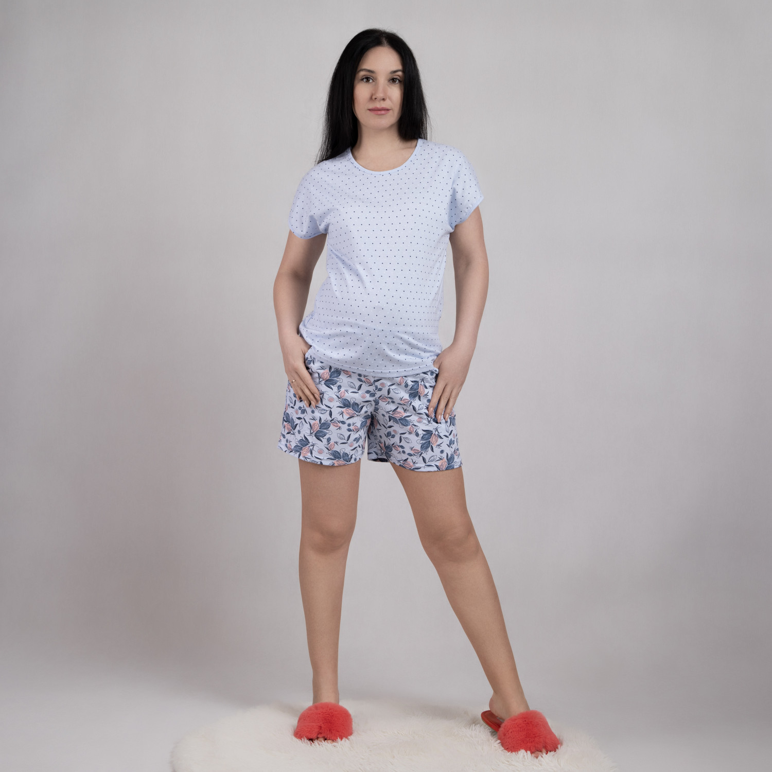 Комплект футболка+шорты "Цветы -голубой цвет" 48-60р.