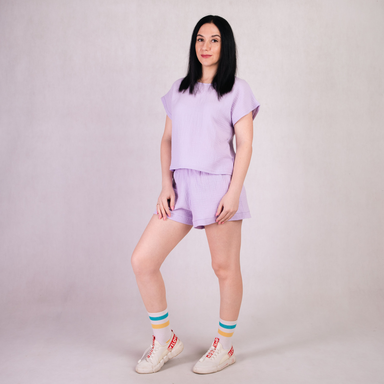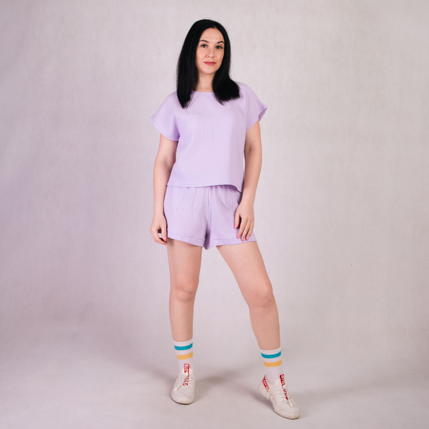 Комплект футболка+шорты "Муслин - сирень" 46-54р.