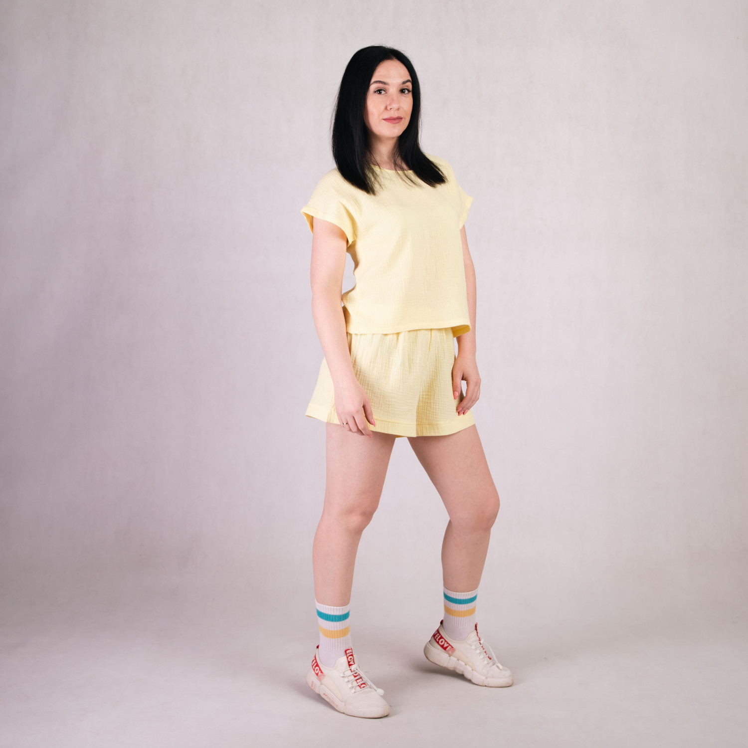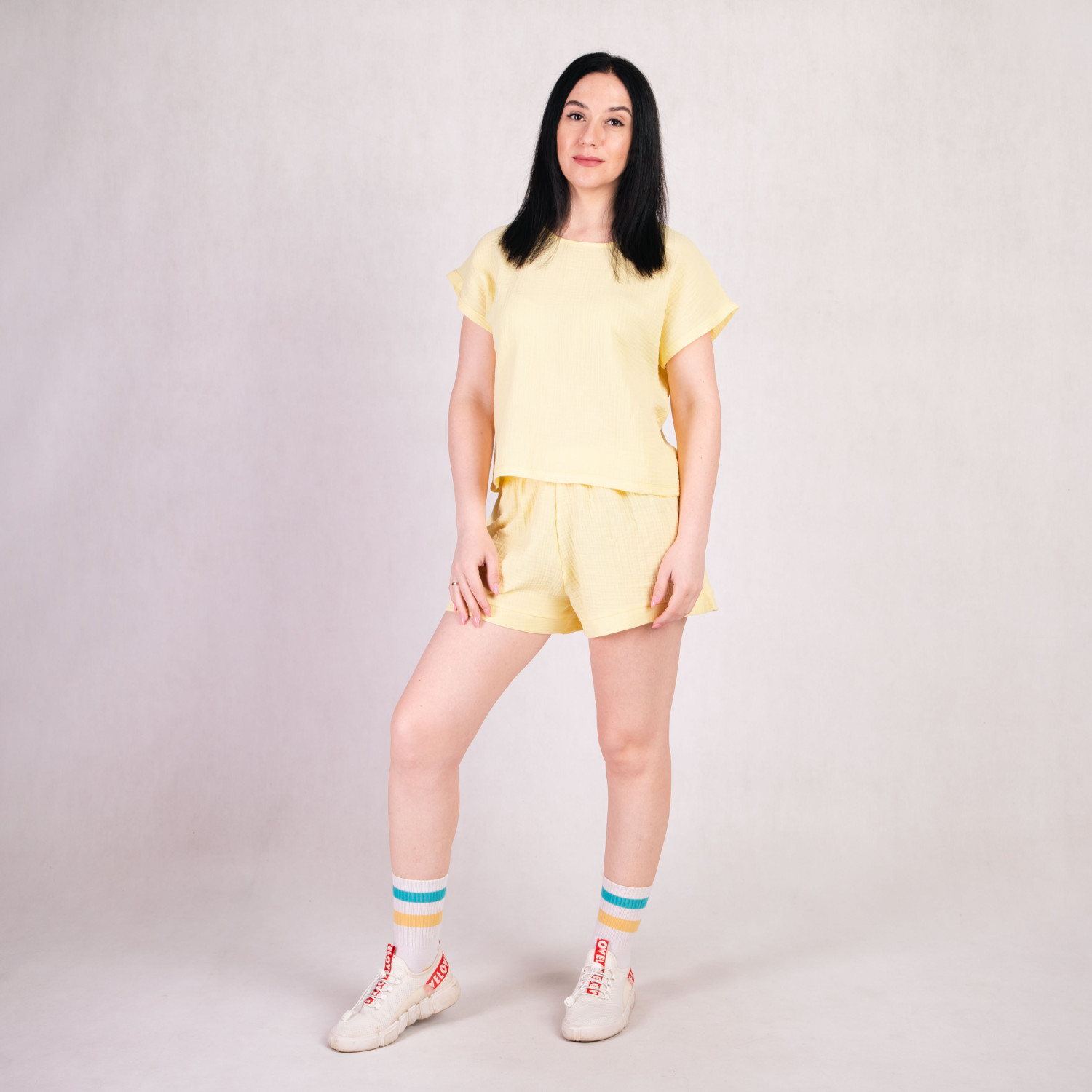 Комплект футболка+шорты "Муслин - светло-желтый" 46-54р.