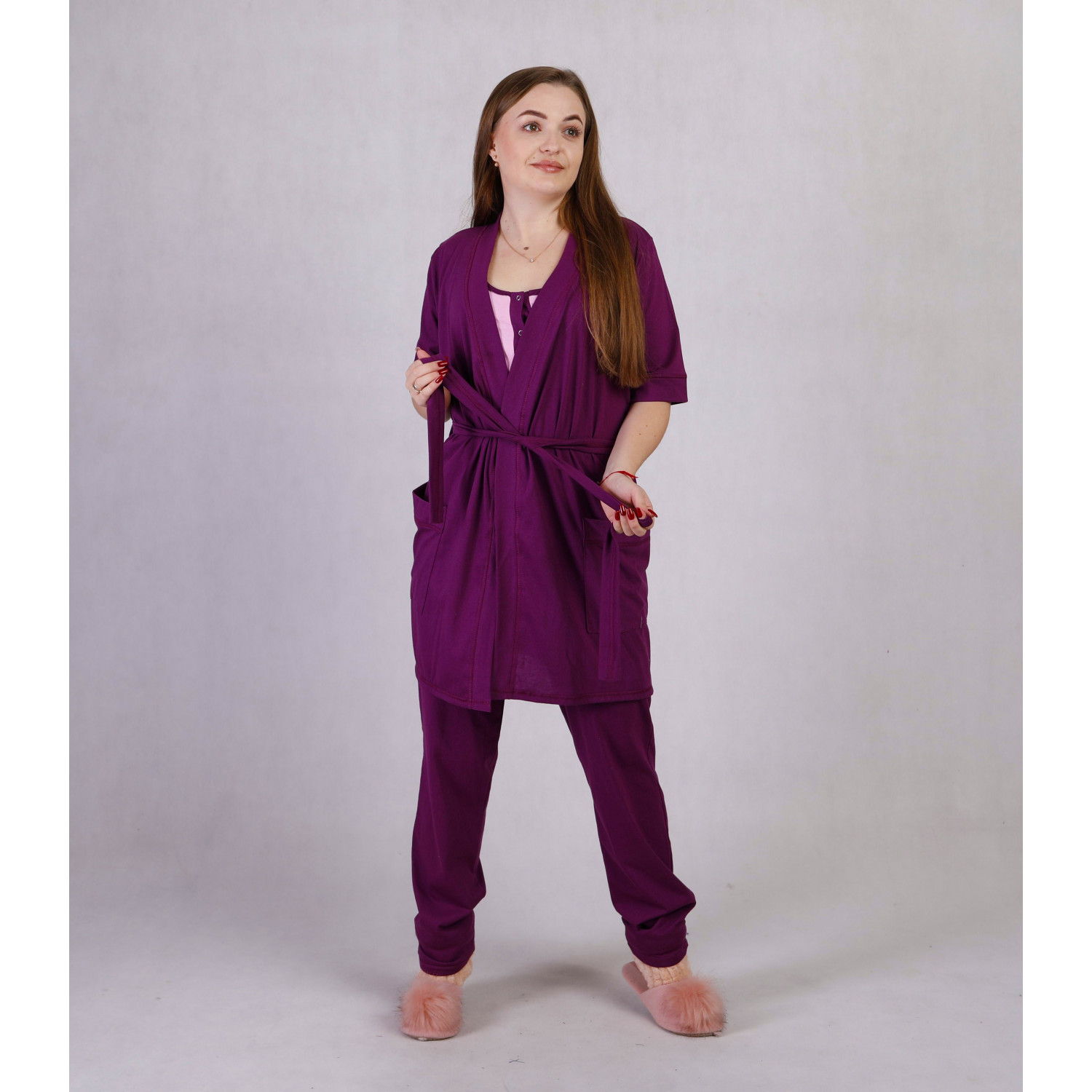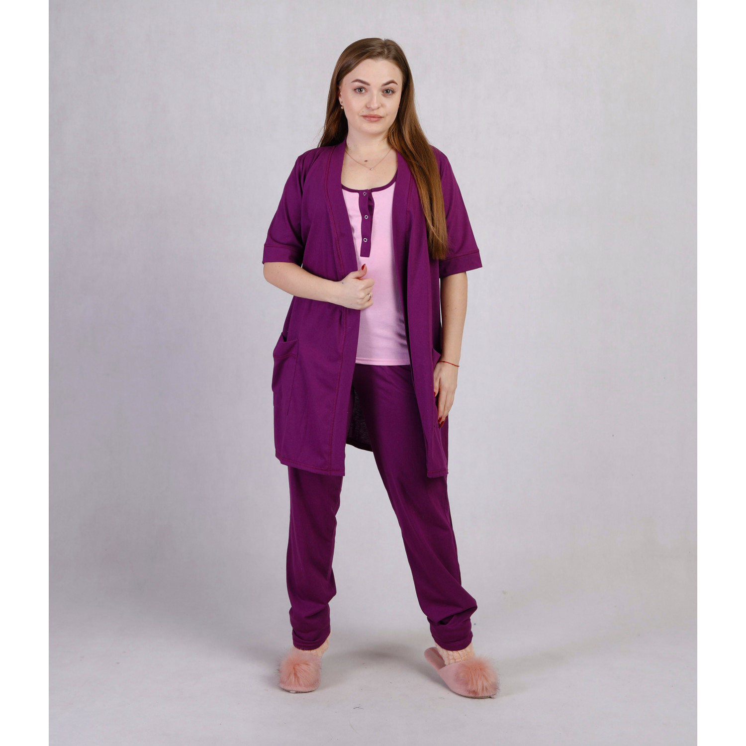 Комплект тройка кулир халат с пижамой "Мила- темно фиолетовый" р.42-54