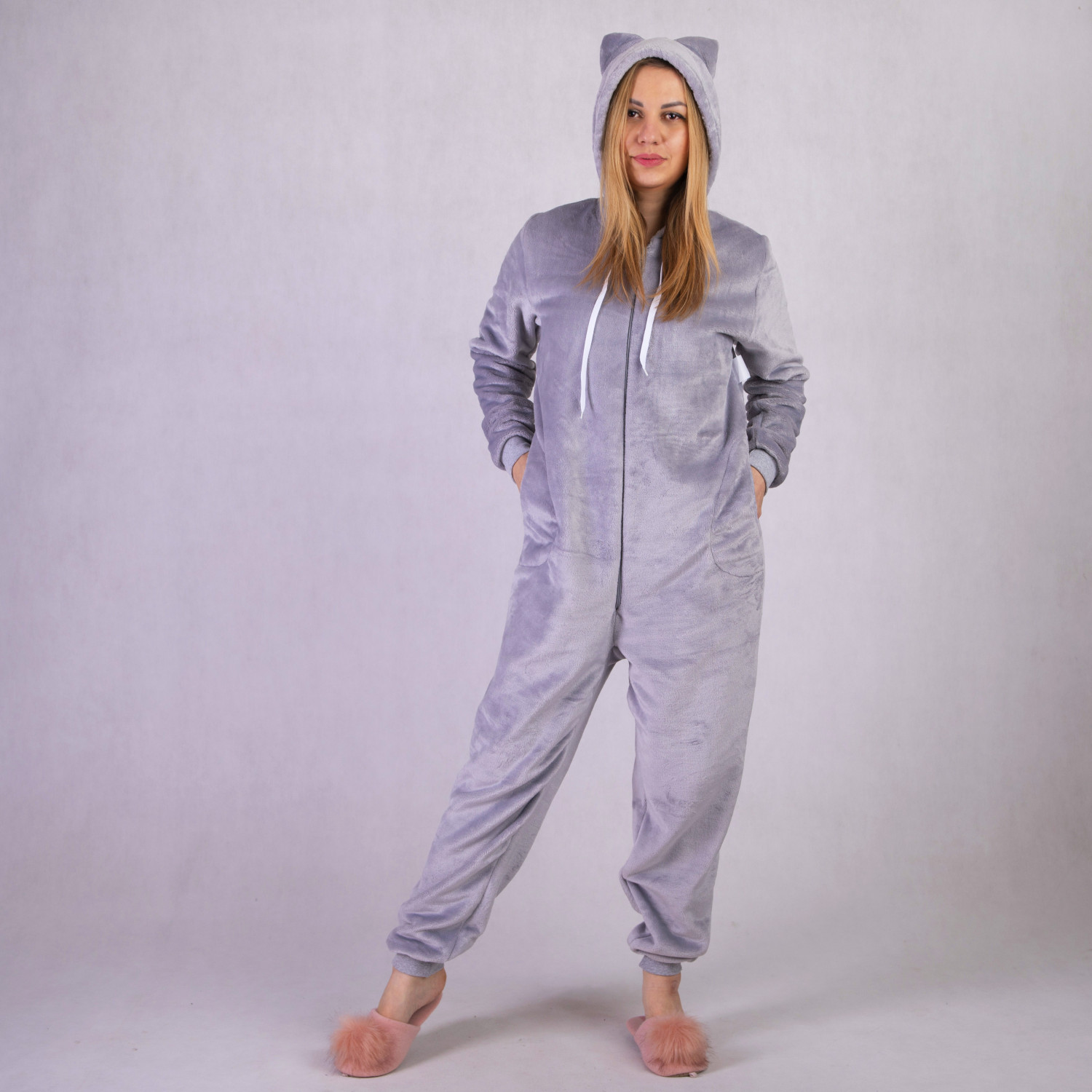 Махровый женский кигуруми "Однотн серый" р. 42-50