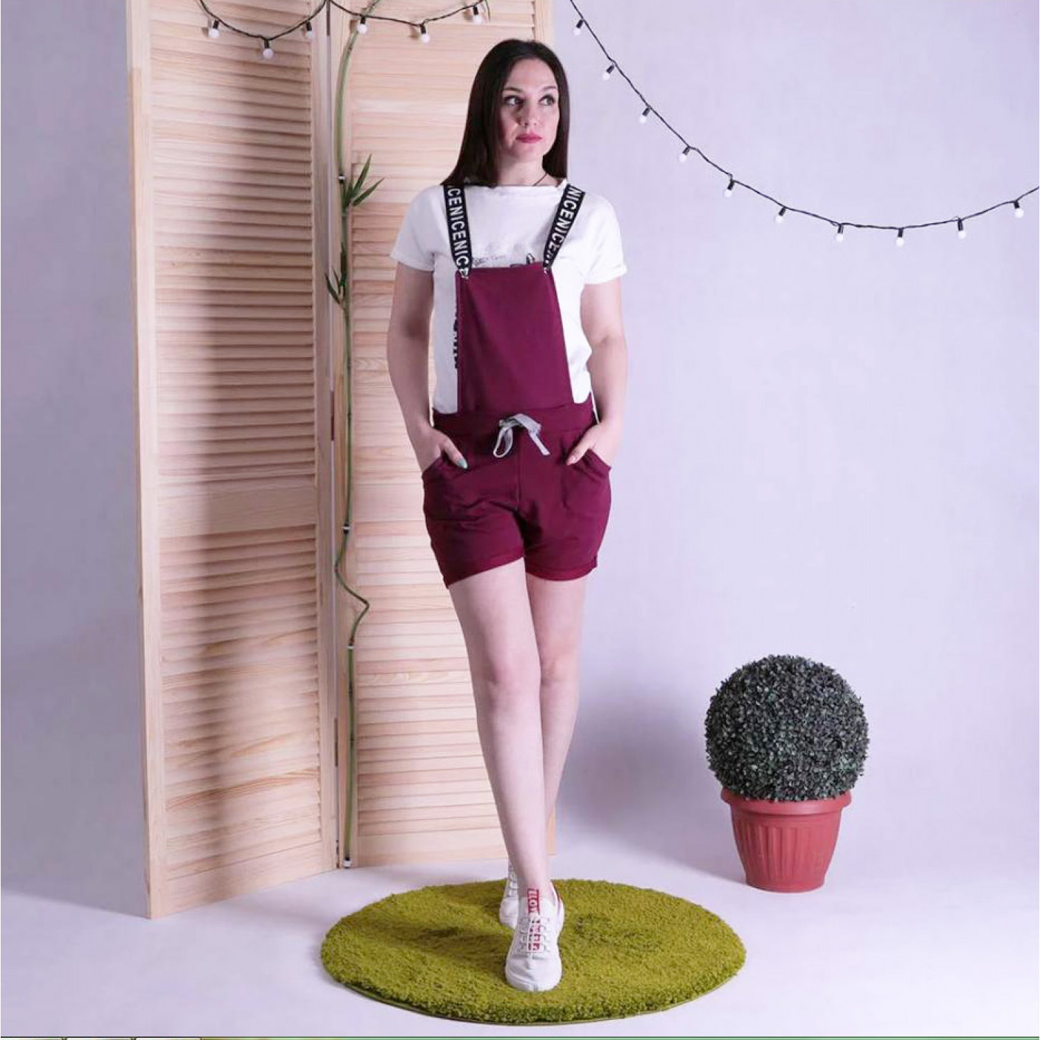 Женский молодежный комбинезон с бриджами на широких шлейка (длина регулируется), полотно 2-х нитка (90% хлопка + 10% эластана).