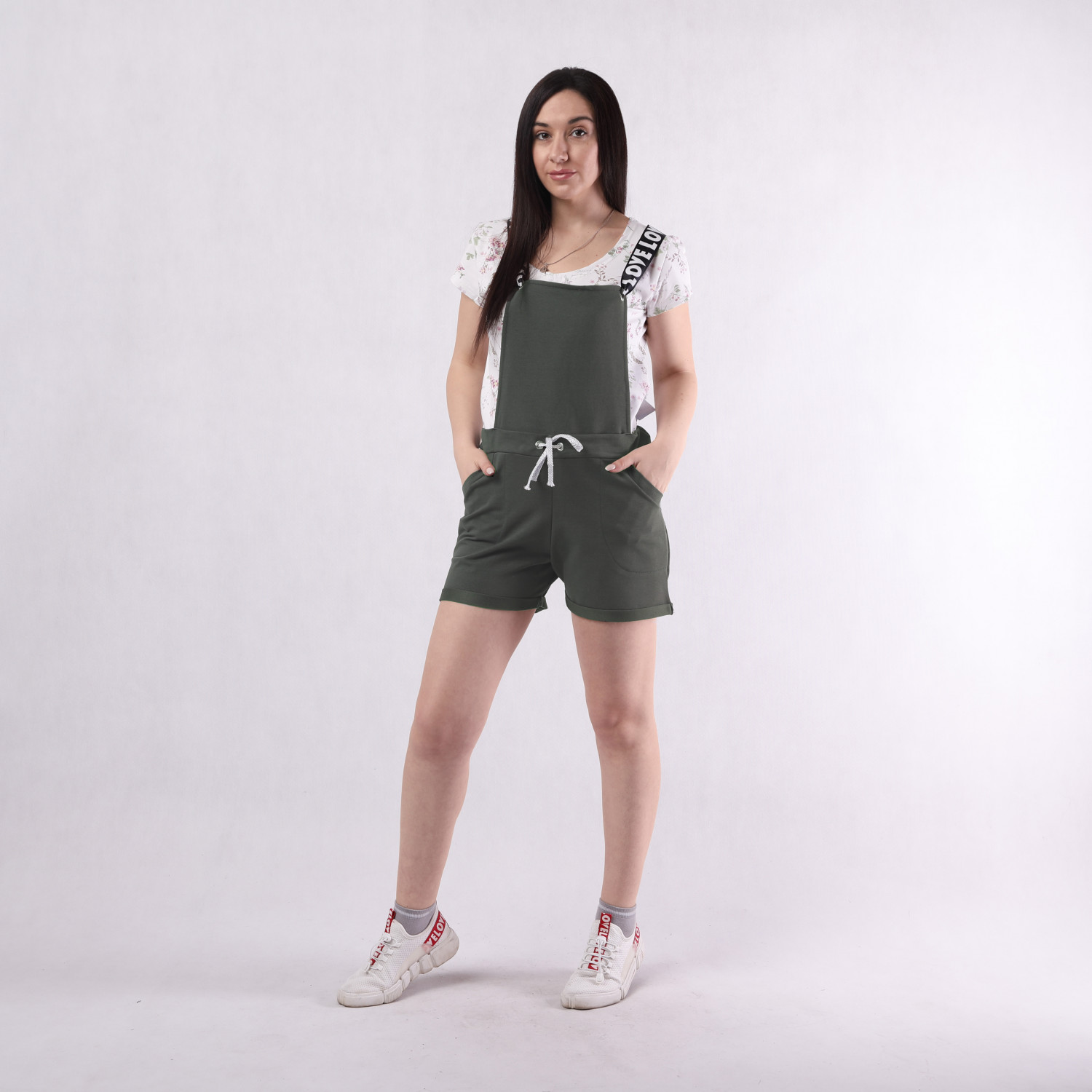 Молодежный женский комбинезон-шорты подходит для будущих мам "Love-хаки" 42-50р.
