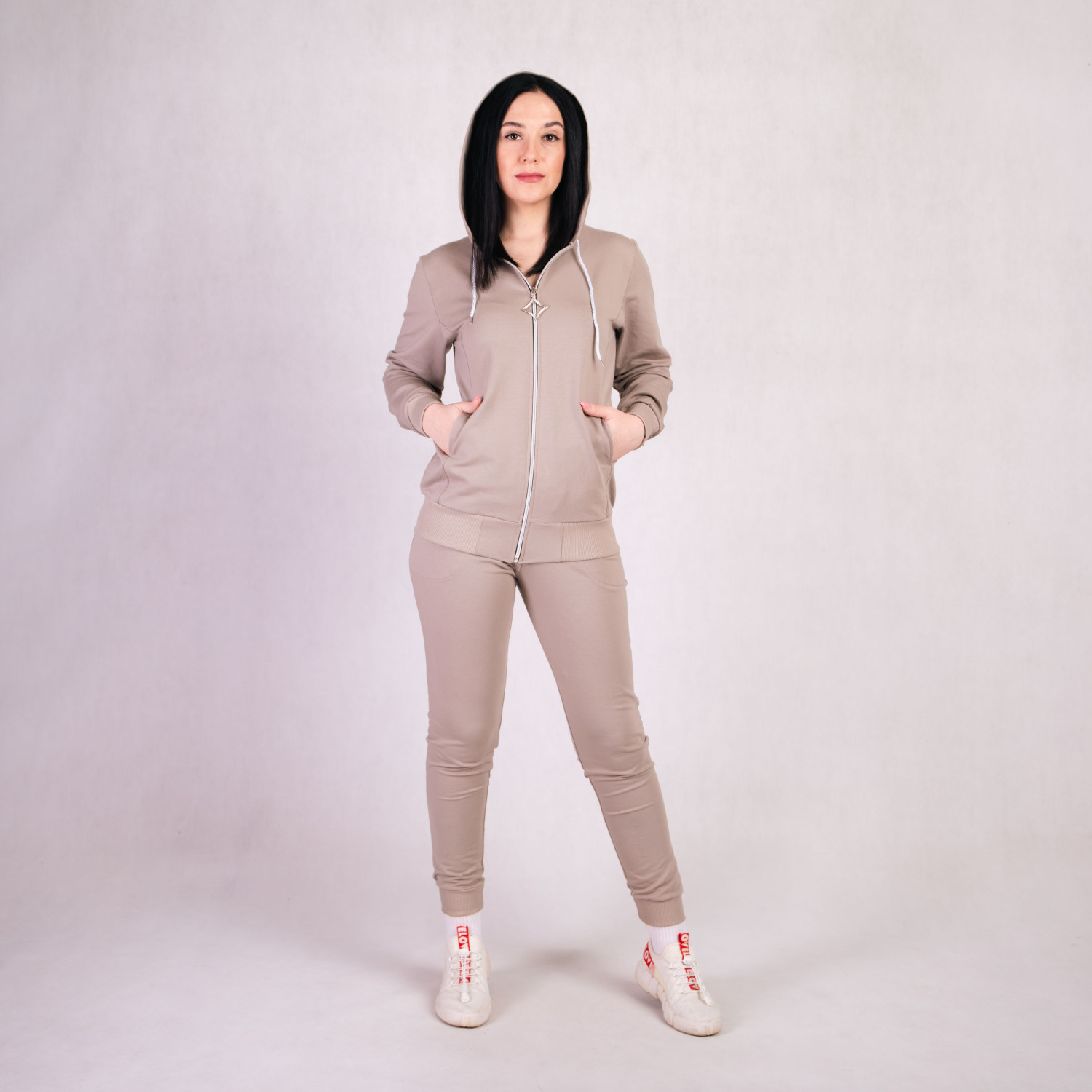 Молодежный женский спортивный костюм 2-х нитка молния "Темно-бежевый" р. 44-56