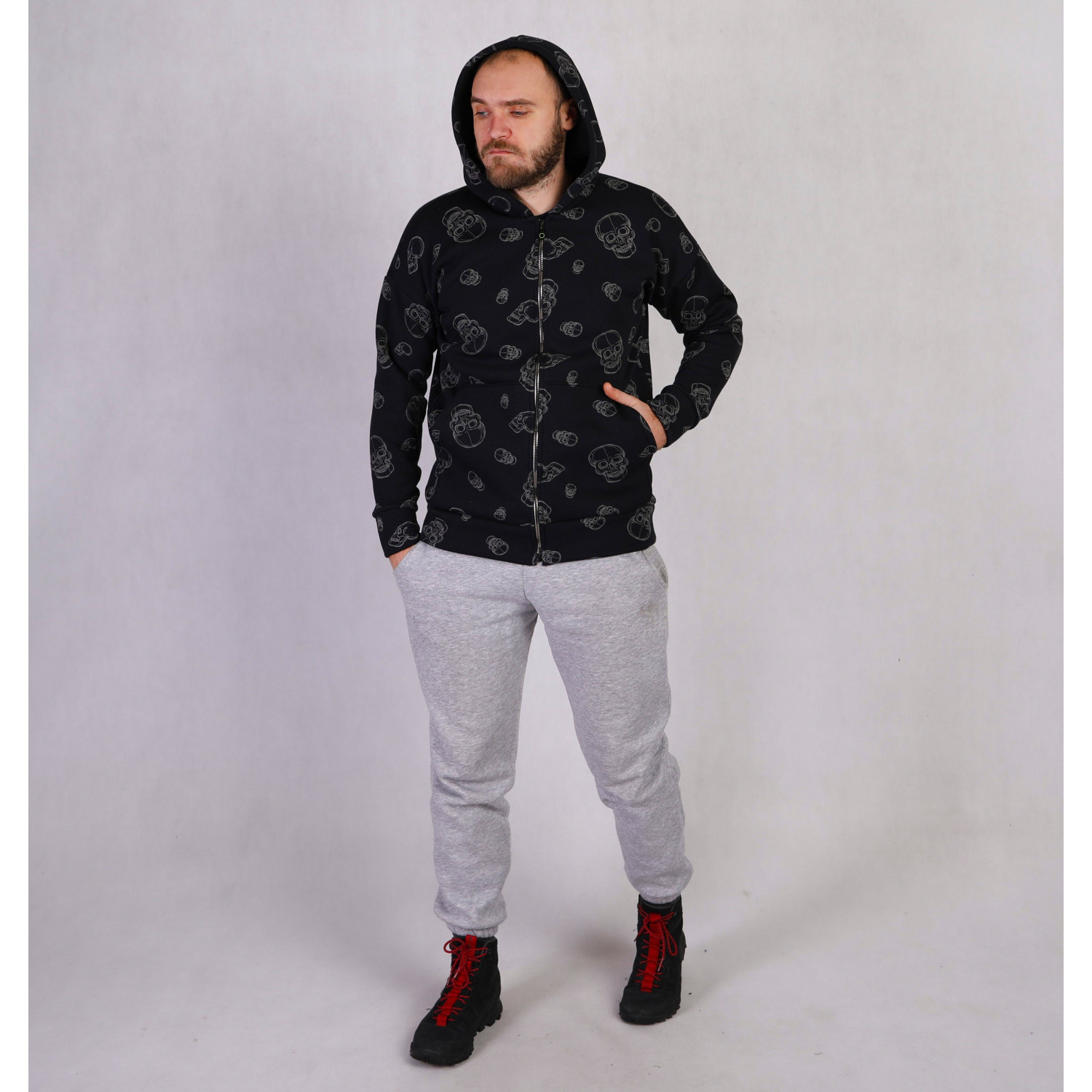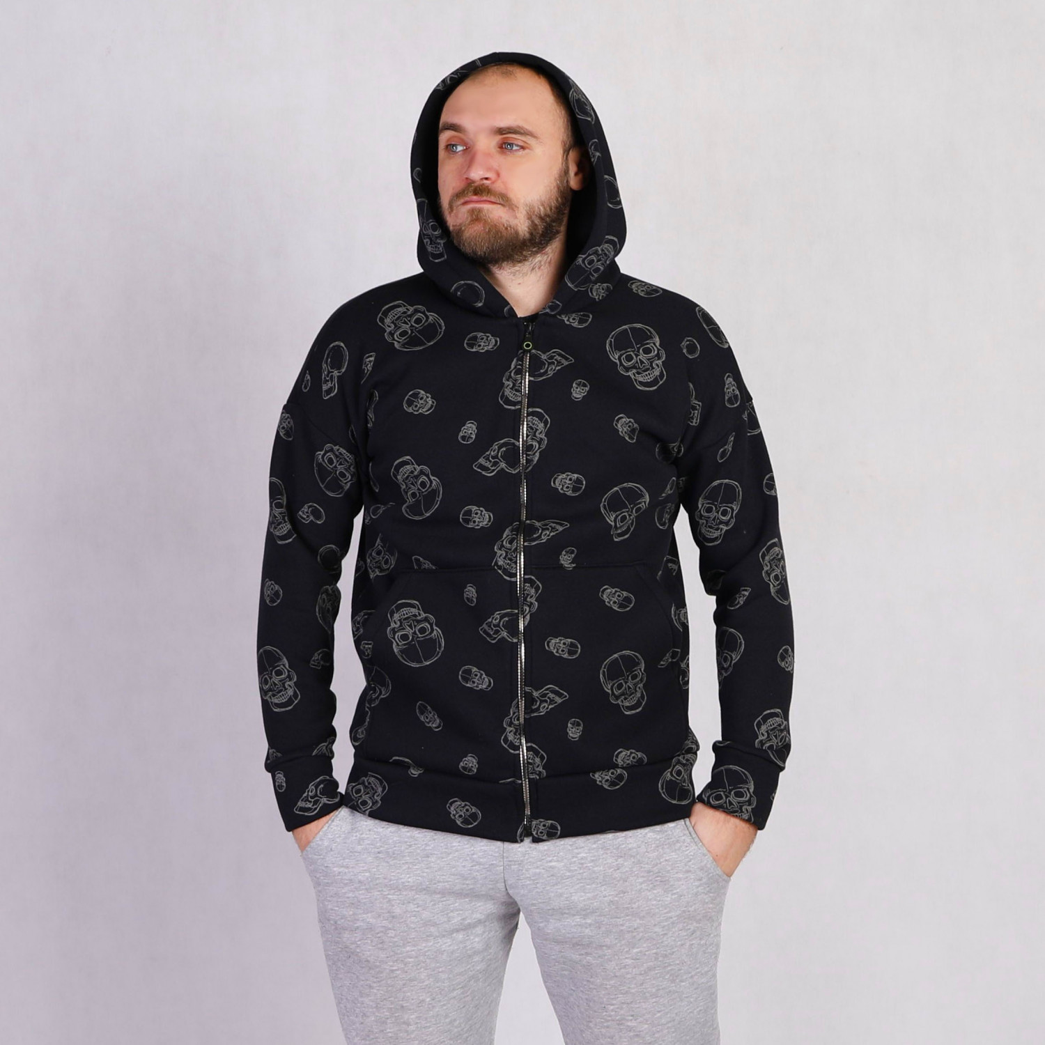 Мужская теплая кофта на молнии с капюшоном "Череп" р. 44-52