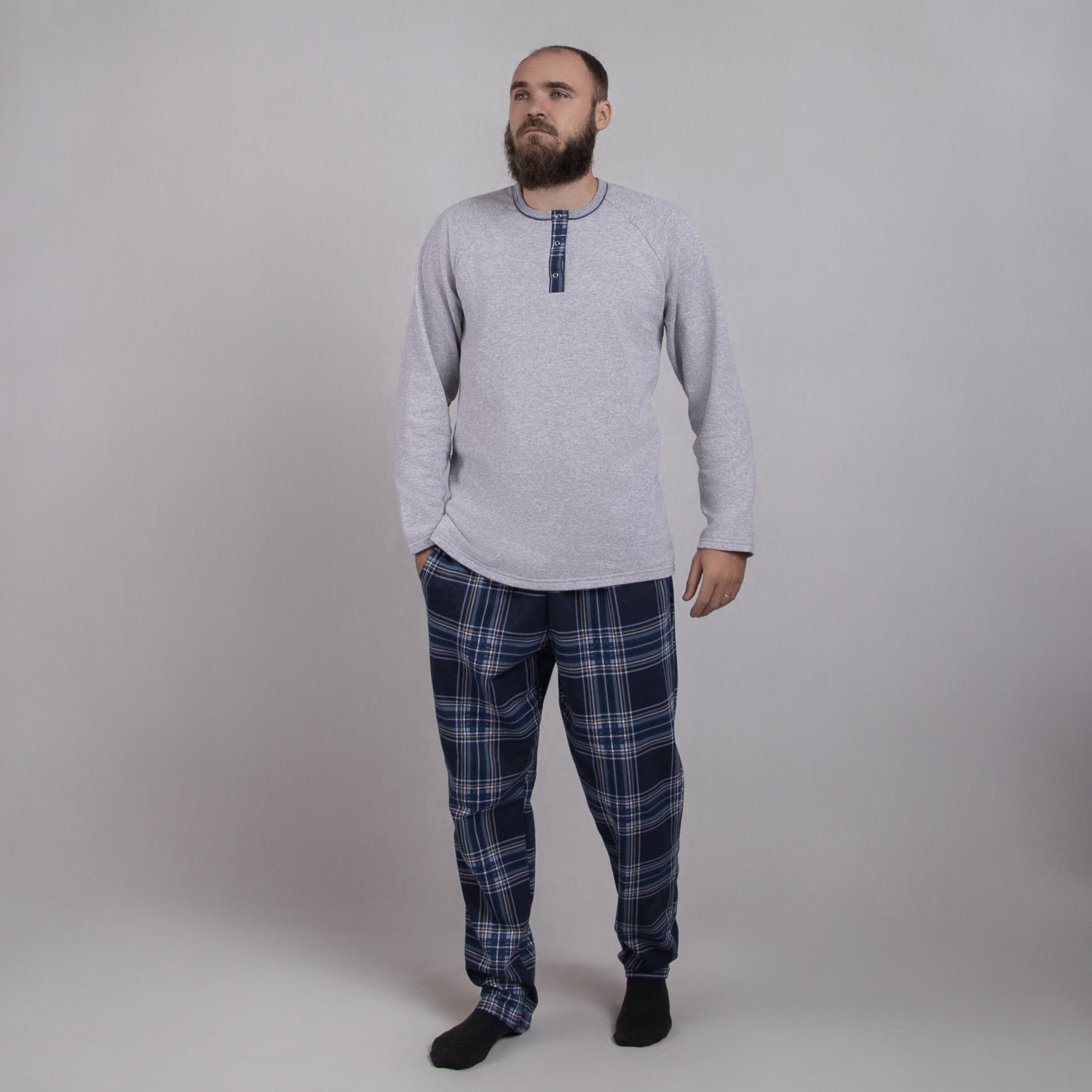 Мужская теплая пижама "Планка -клетка серо-синий цвет " р.48-60