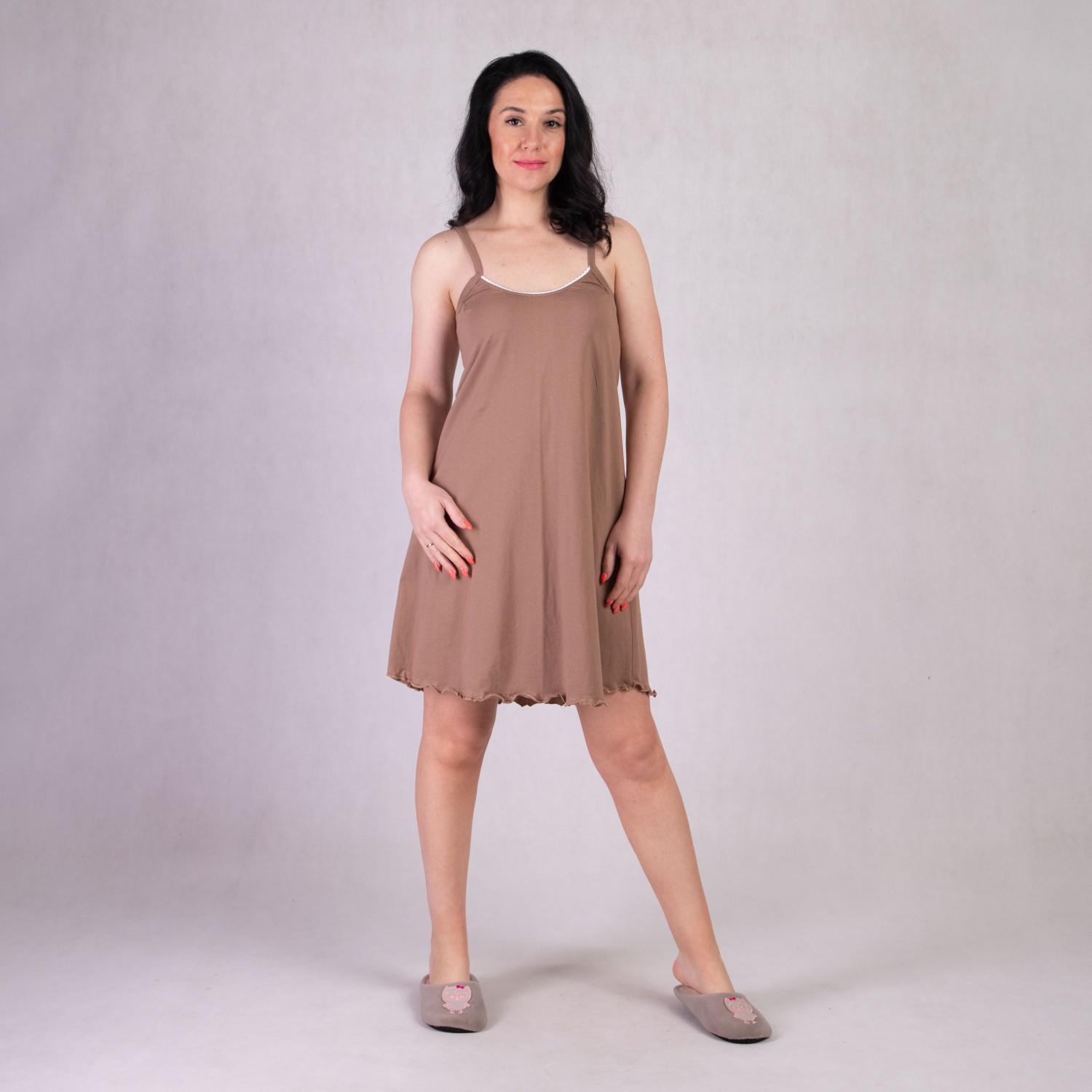 Ночная сорочка на тонких бретелях без застежек " Соломия-коричневый цвет" р. 46-54