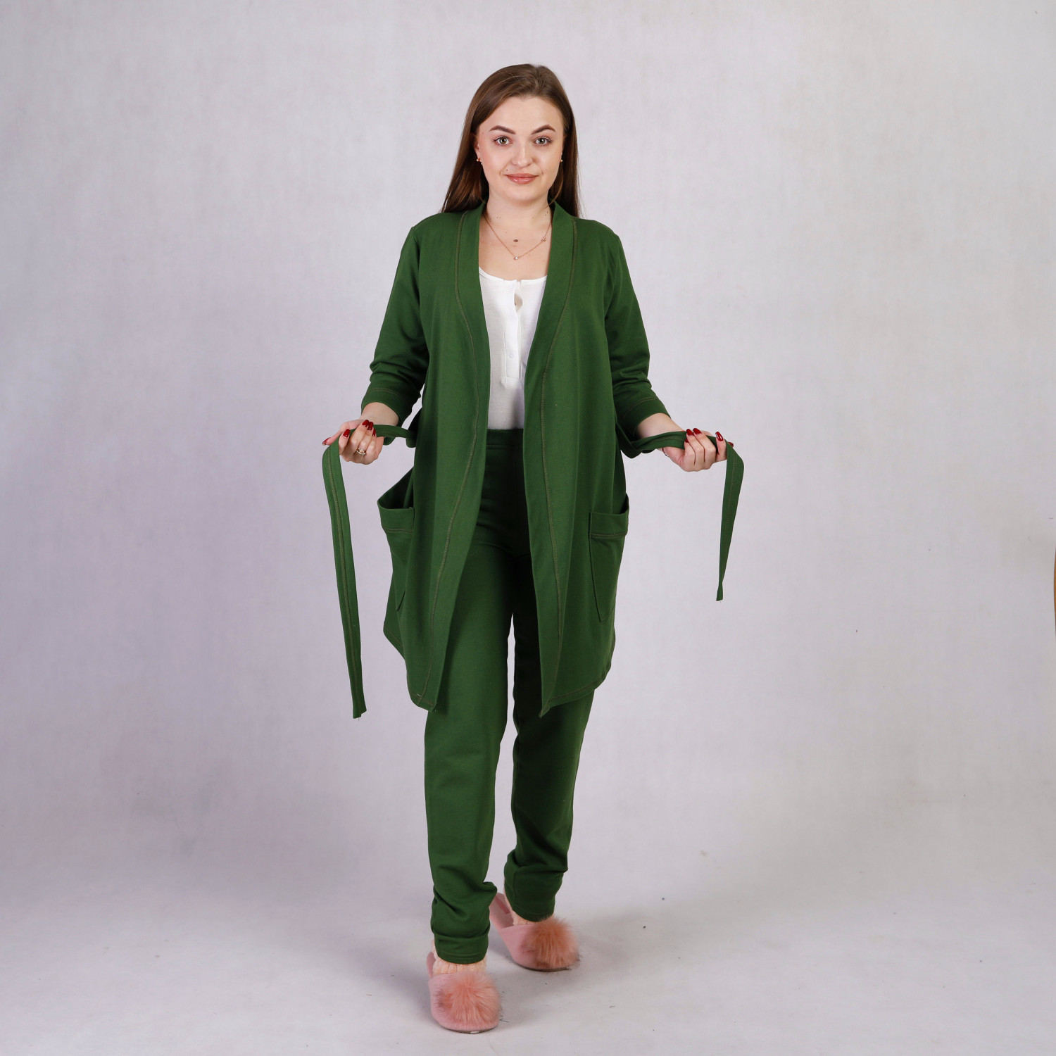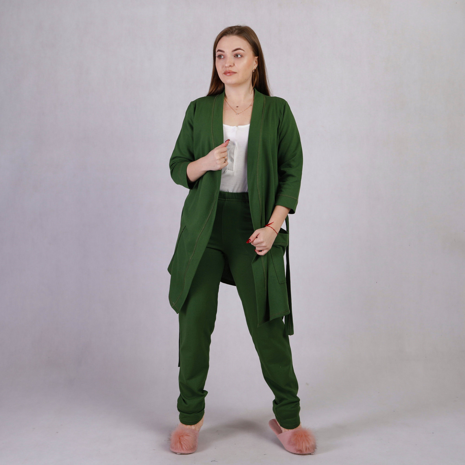 Теплая тройка начес халат с пижамой "Темно-зеленый" р.42-54