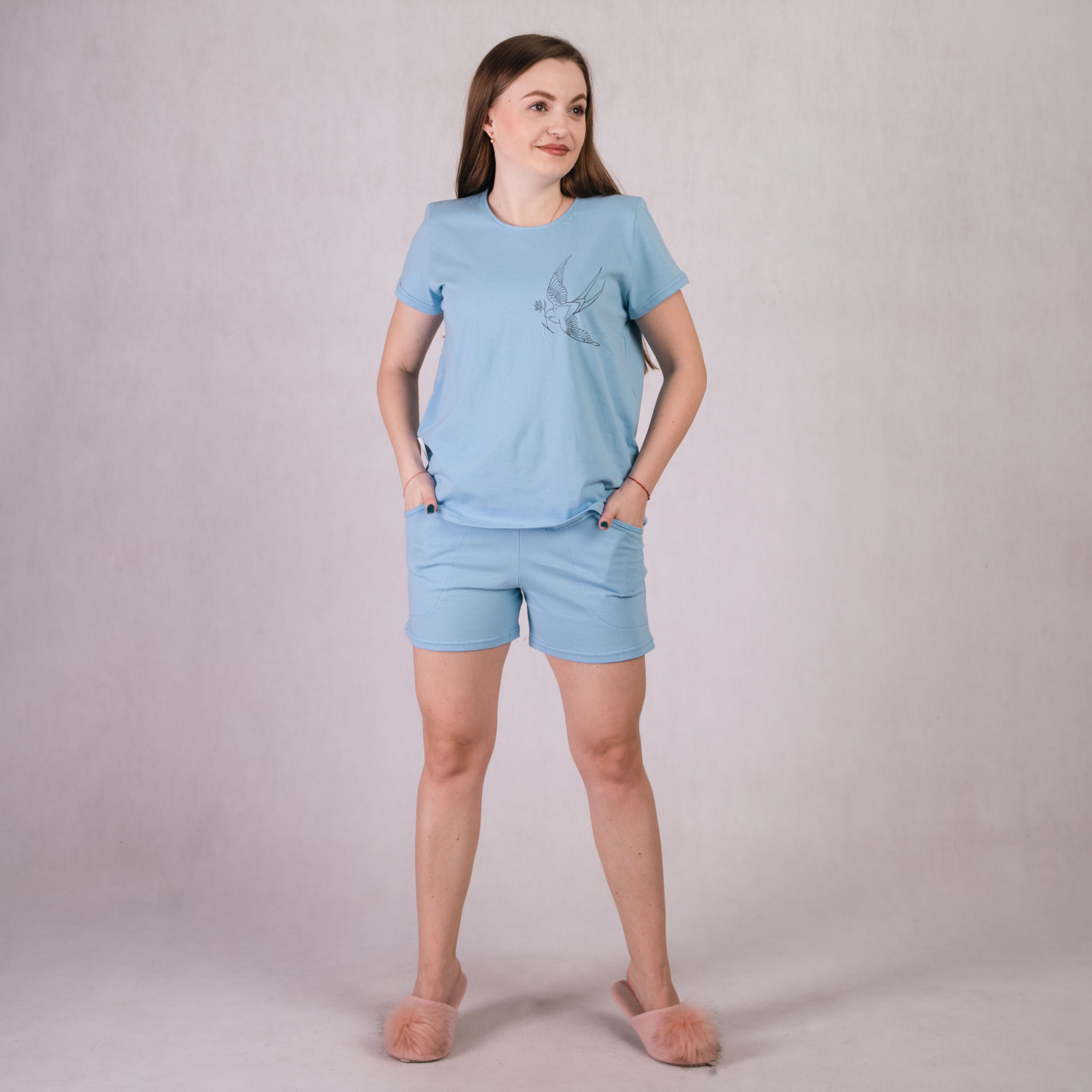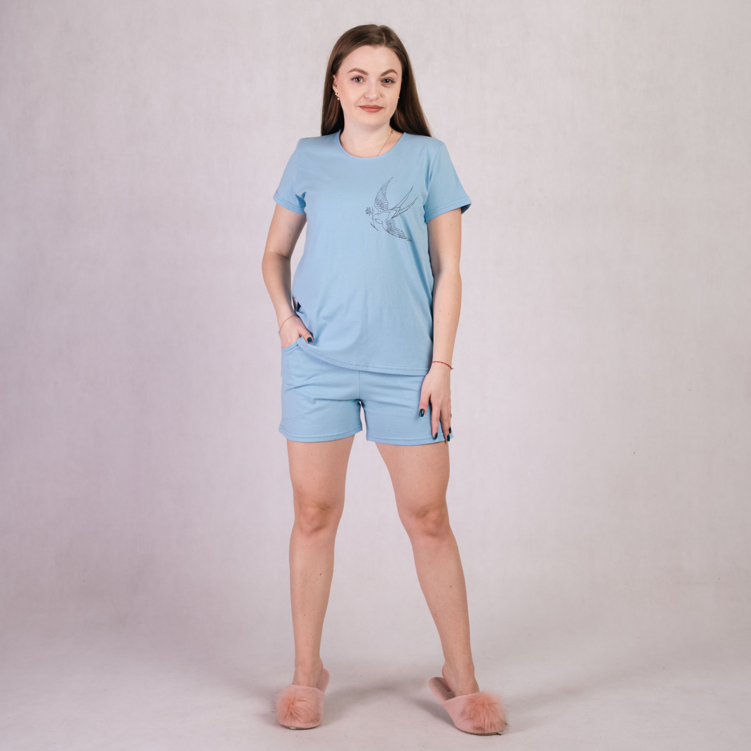 Женская летняя пижама футболка с бриджами "Ласточка- голубой цвет" 46-58р.