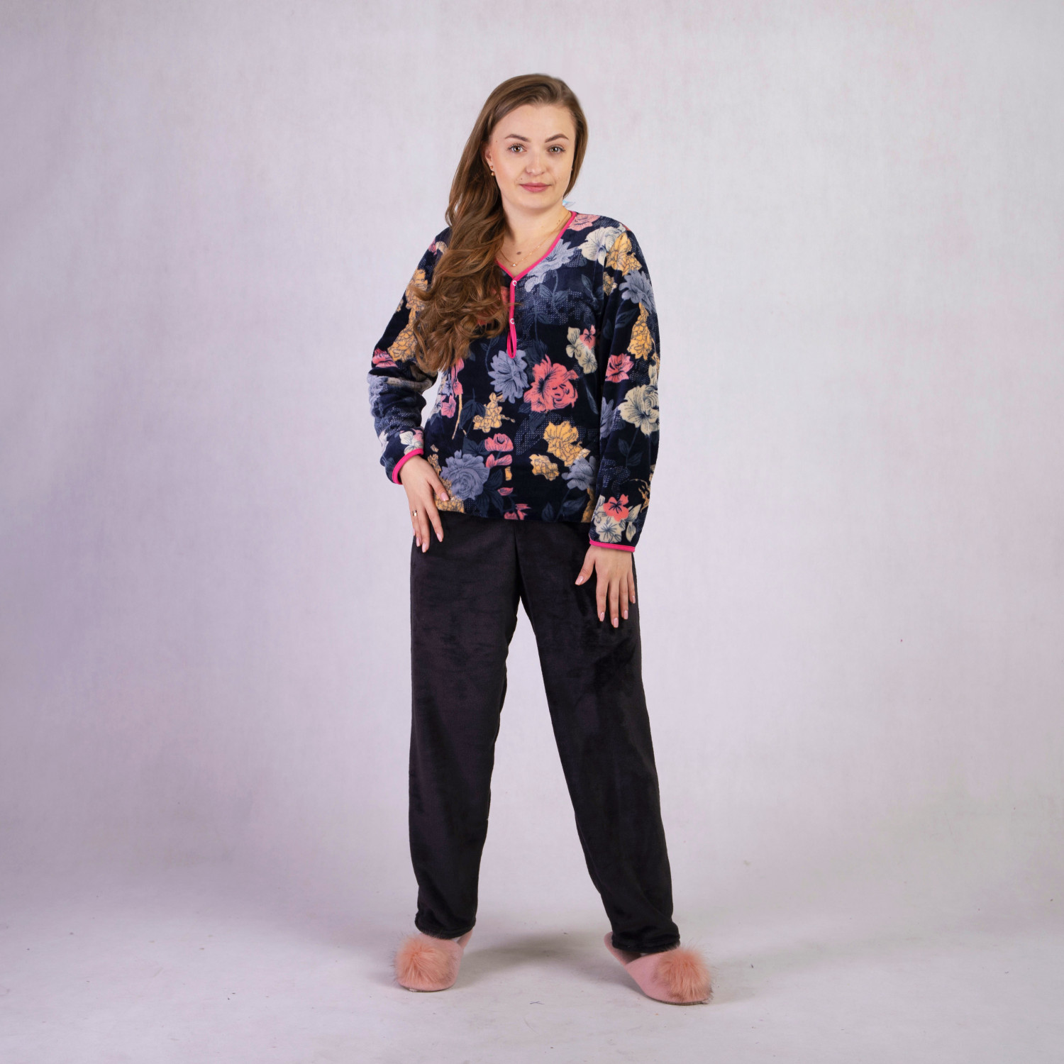 домашняя одежда, махровая пижама, женская пижама, теплый домашний костюм, махровая женская пижама Цветы-кнопка