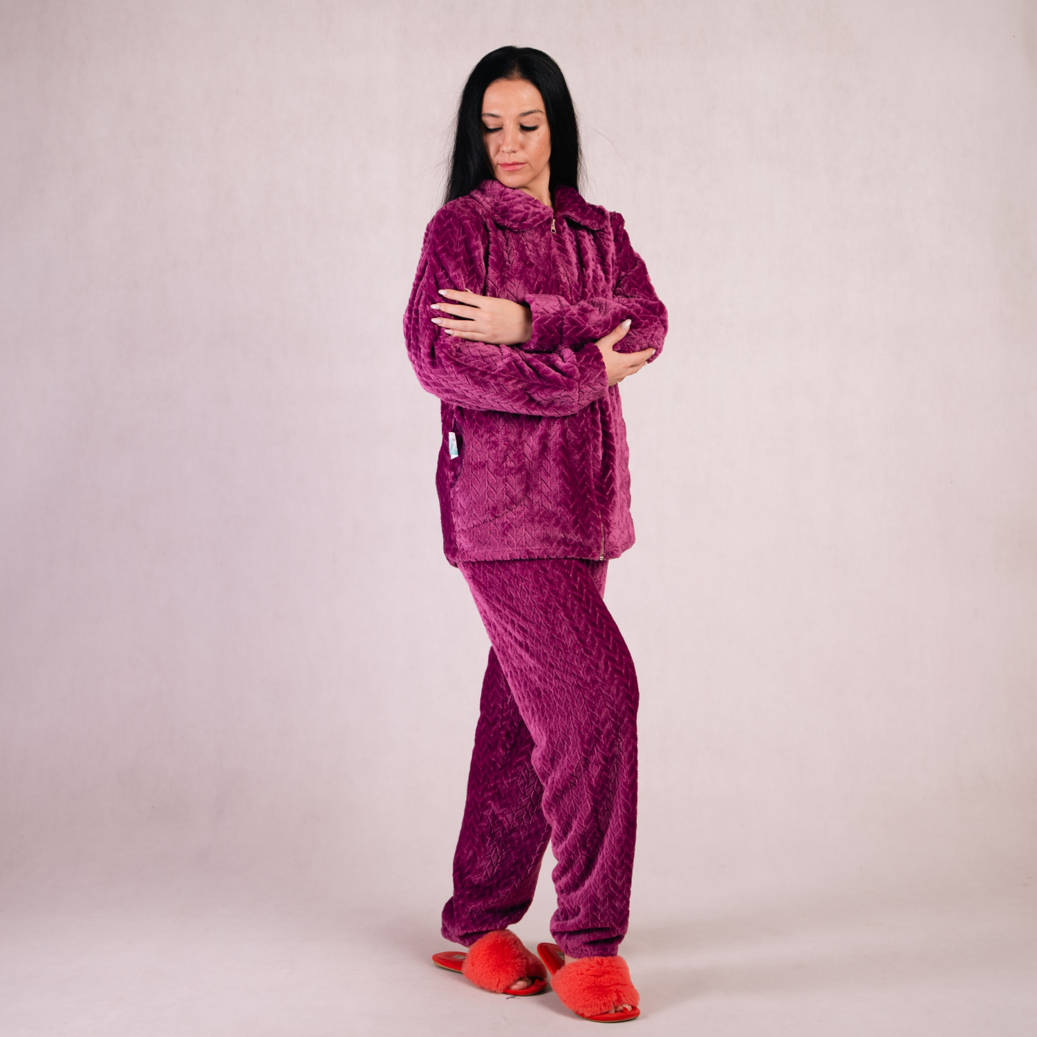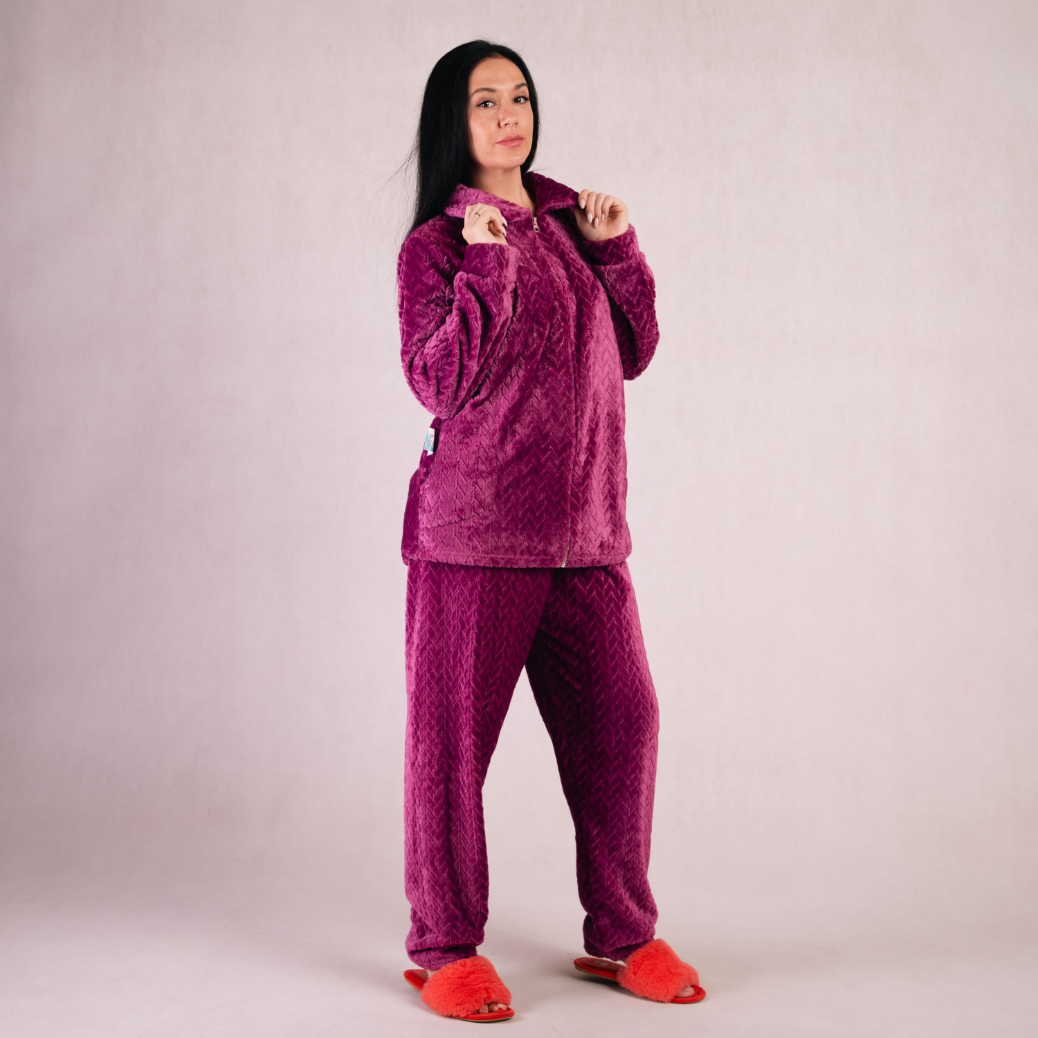Женская махровая пижама "Коса-ворот-фуксия" 44-60р.