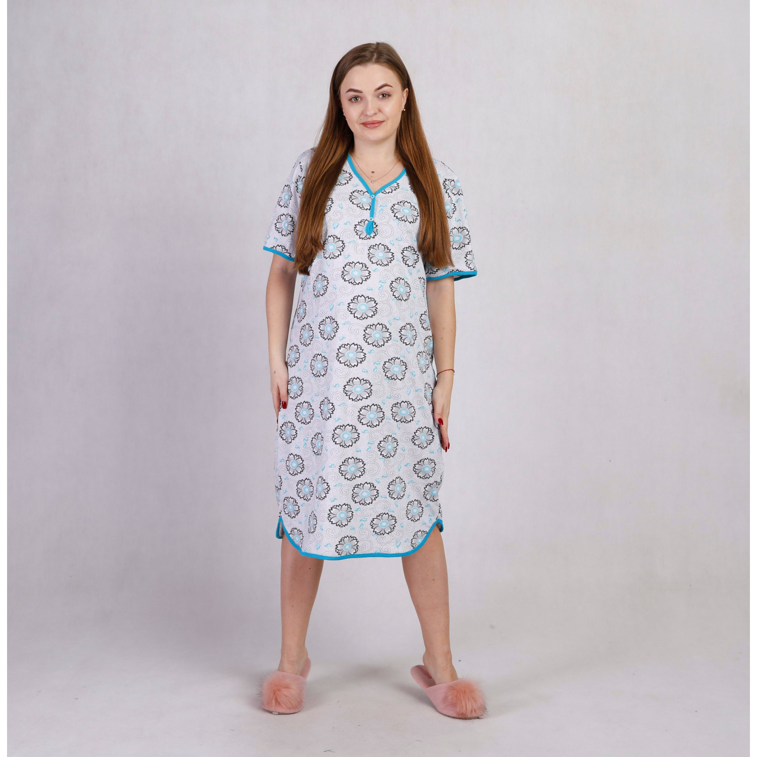 Женская трикотажная ночная батал "Василина-цветок ментол" р.52-64