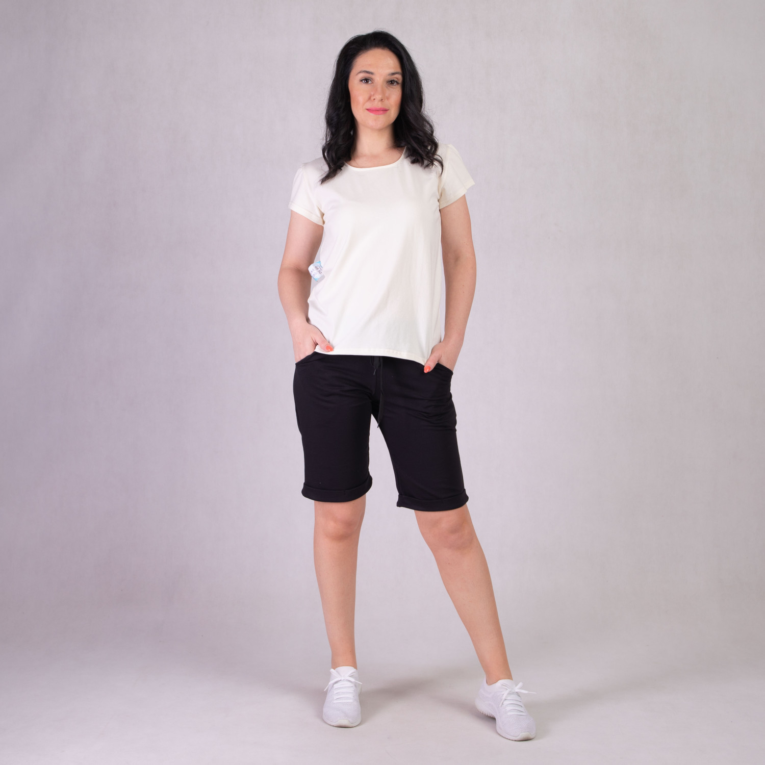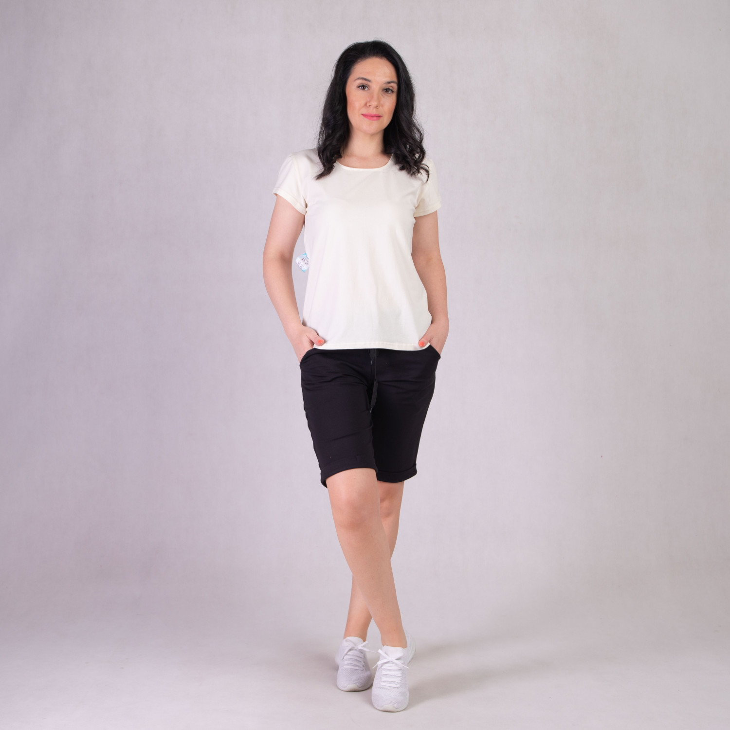 бриджи средней длины с карманами, свободного кроя, резинка на шортах широкая.