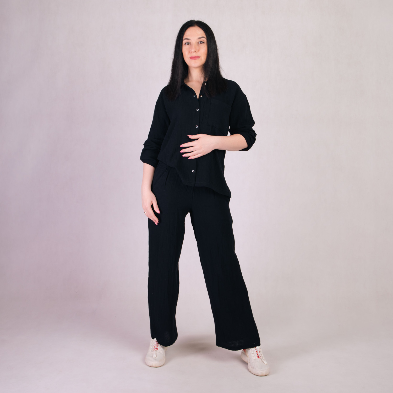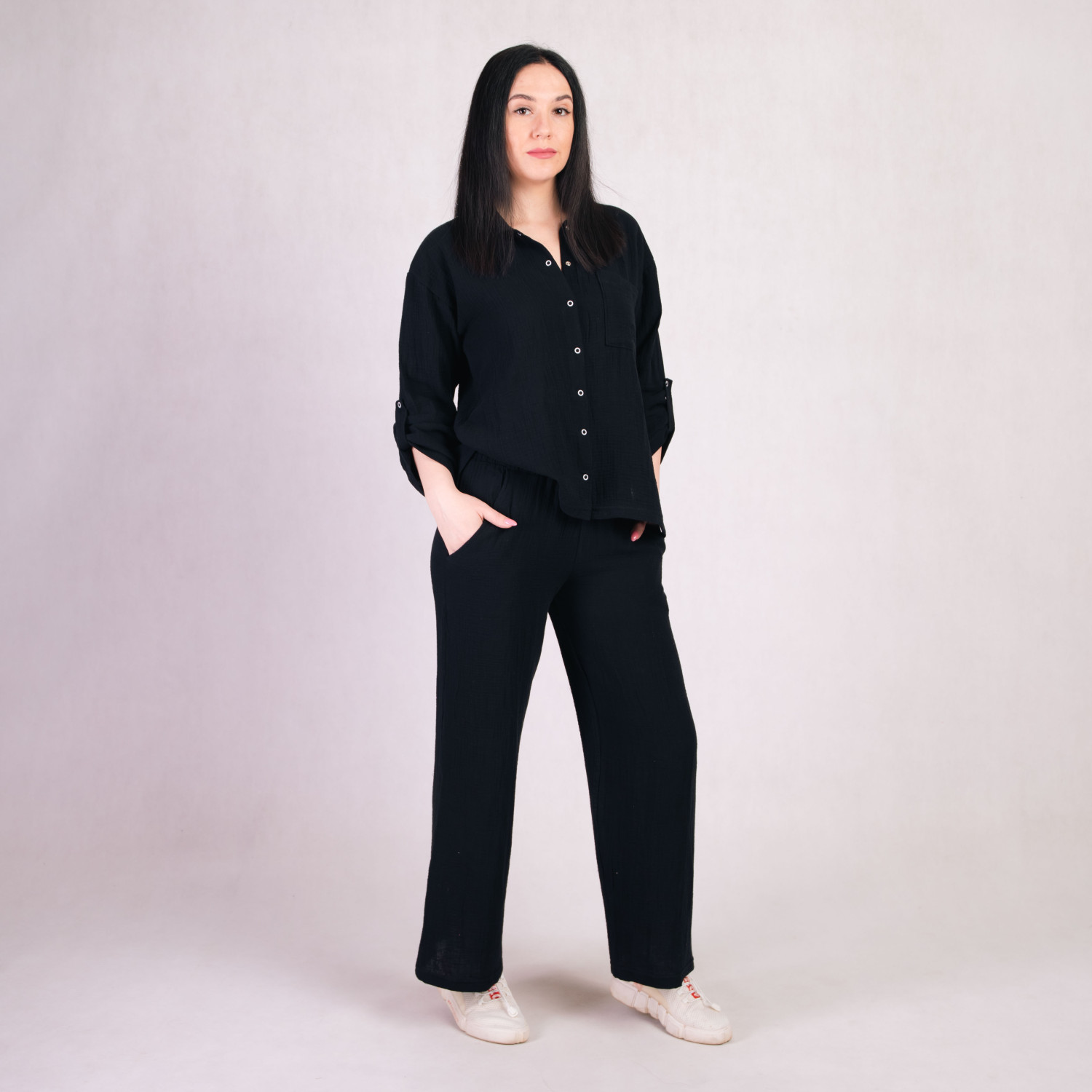 Женский костюм рубашка+штаны "Муслин-Черный" р.46-54