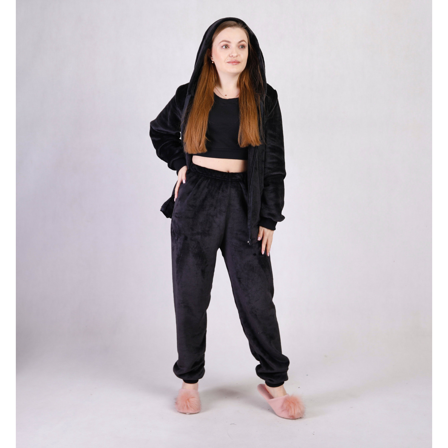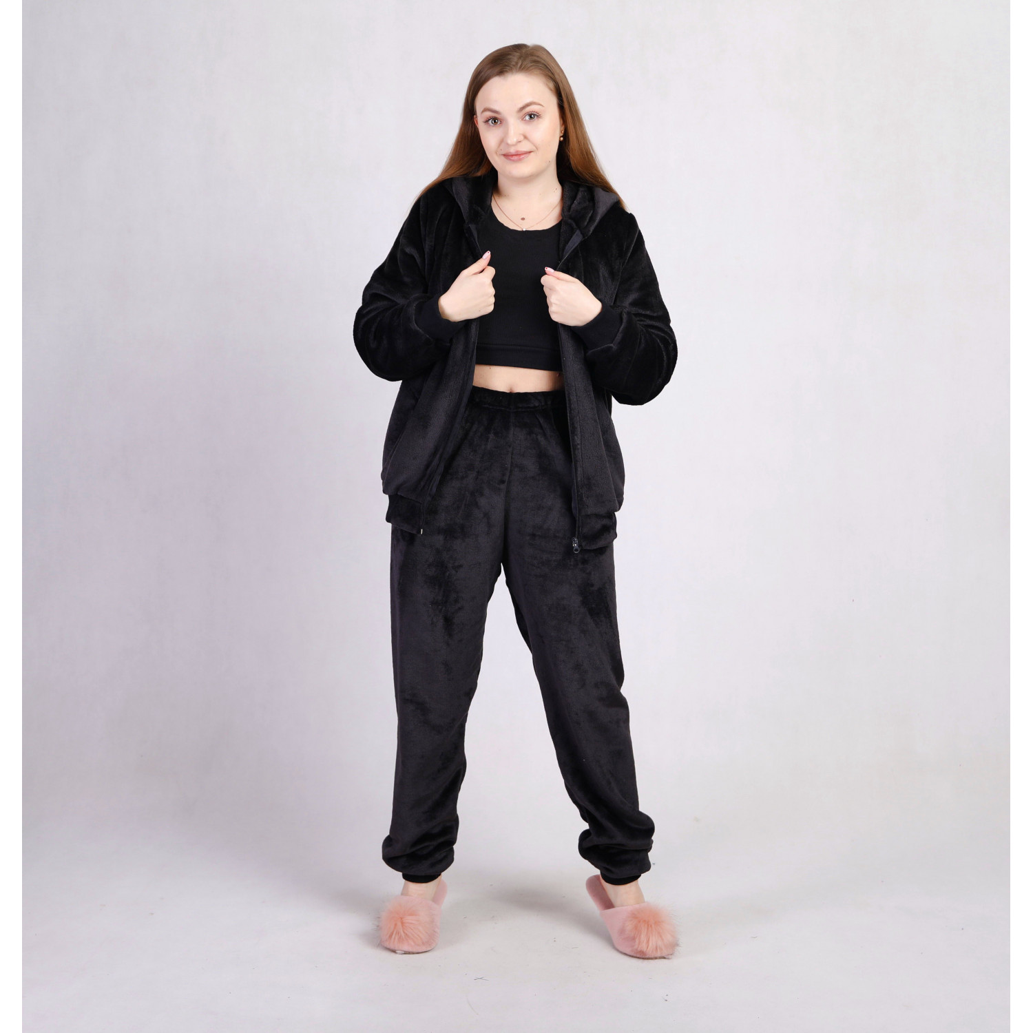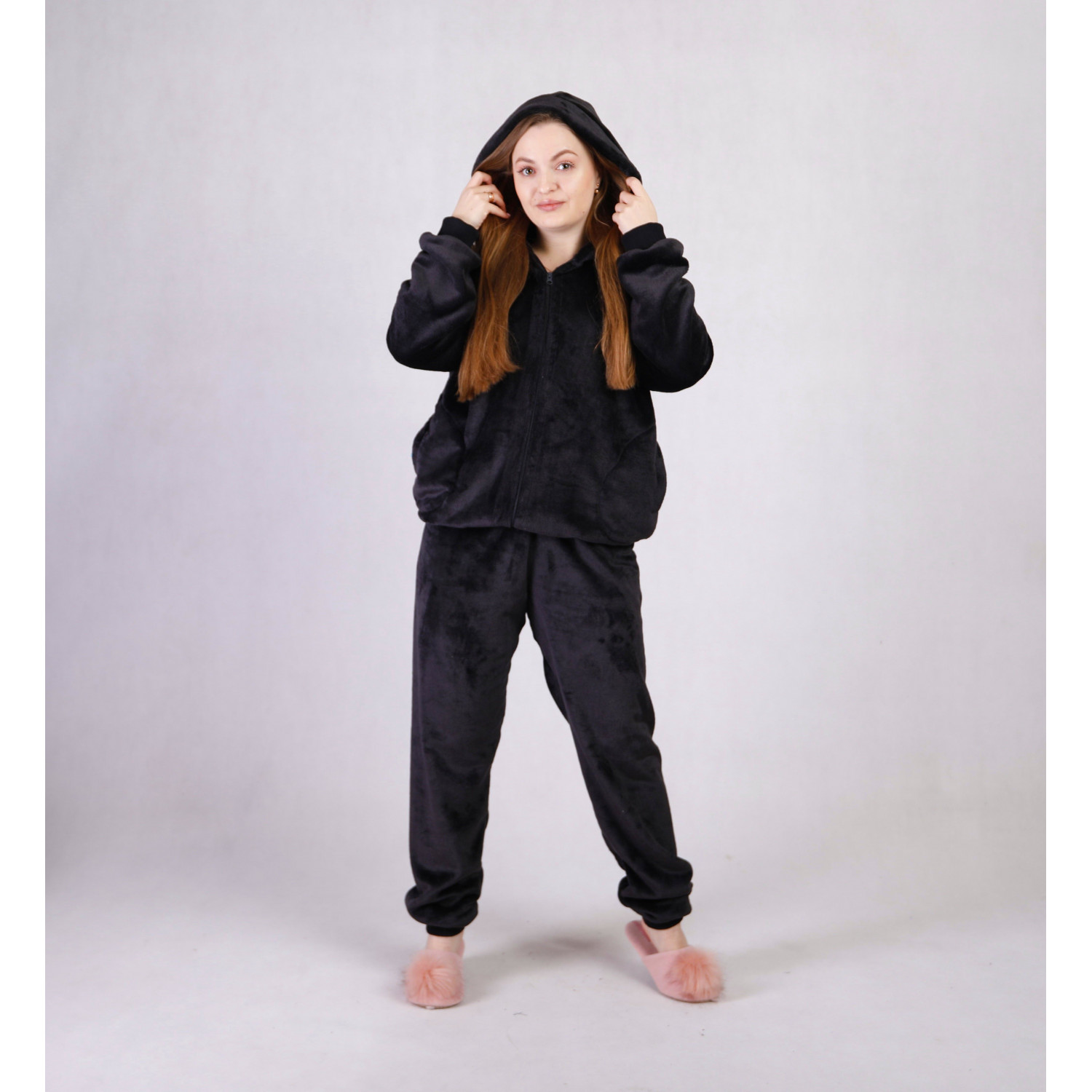 Женский махровый домашний костюм на молнии "Однотон Черный" р. 46-54