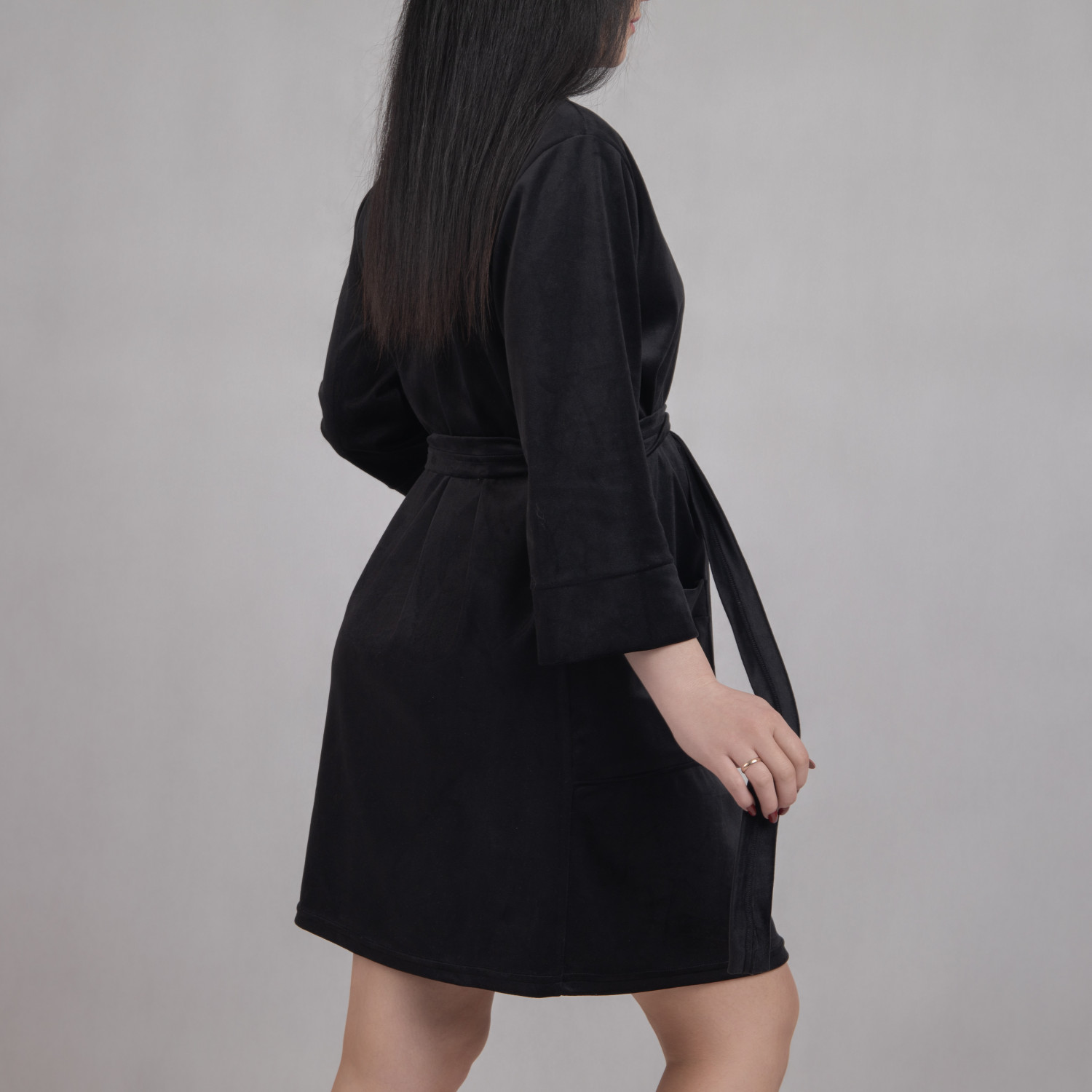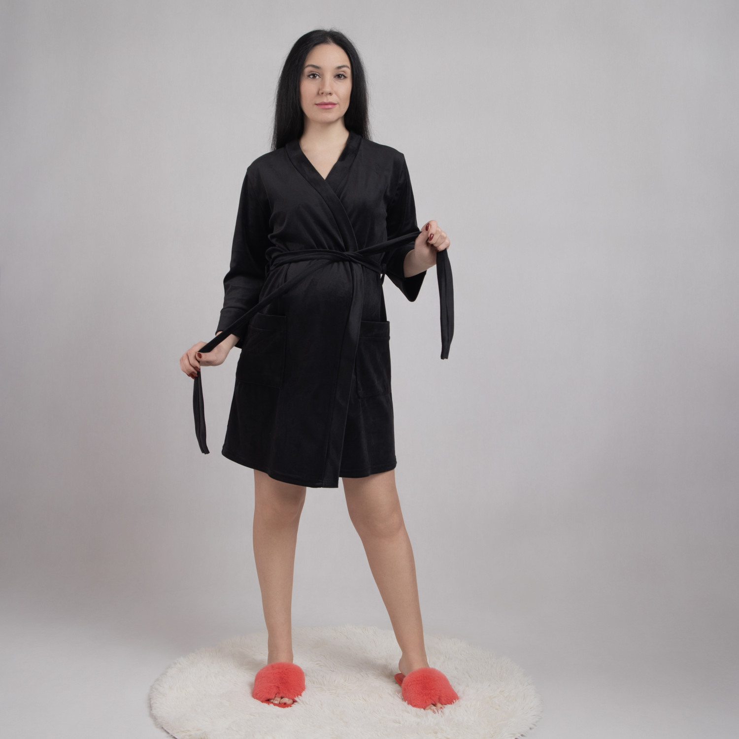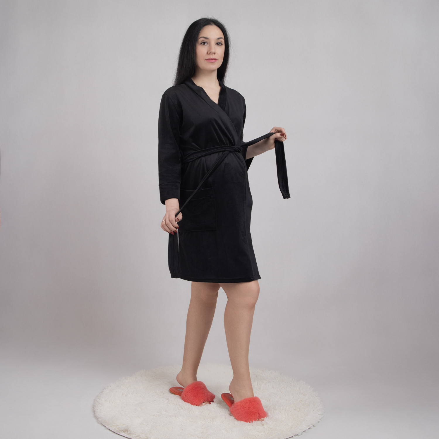 Женский велюровый халат на запах "Бархат-черный" 46-54р.