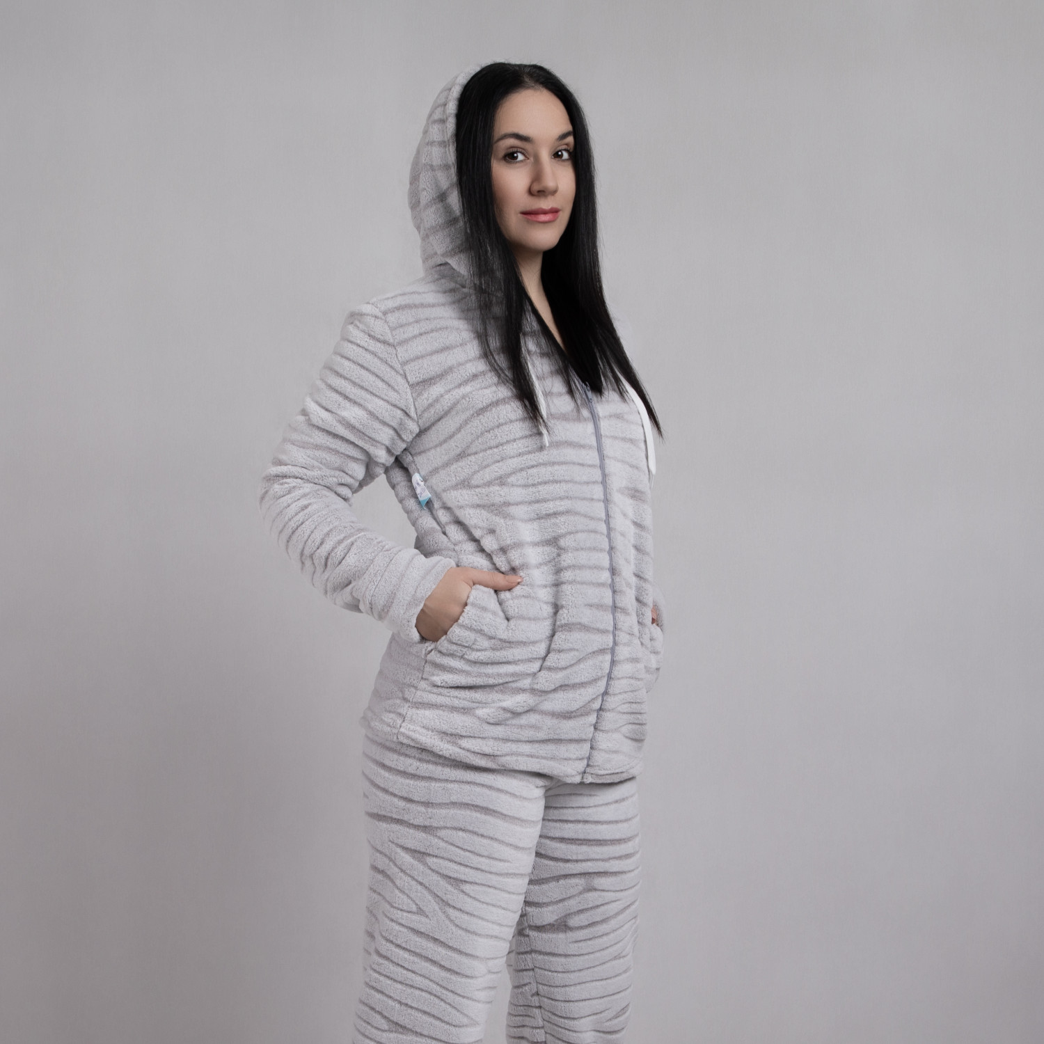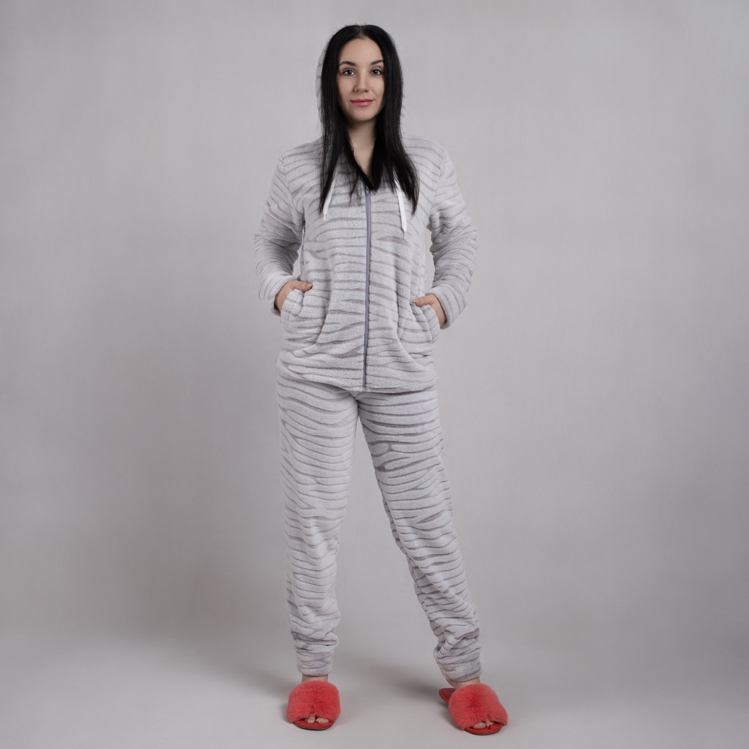 Жіноча махрова піжама на блискавці "Шиншила" р.48-56